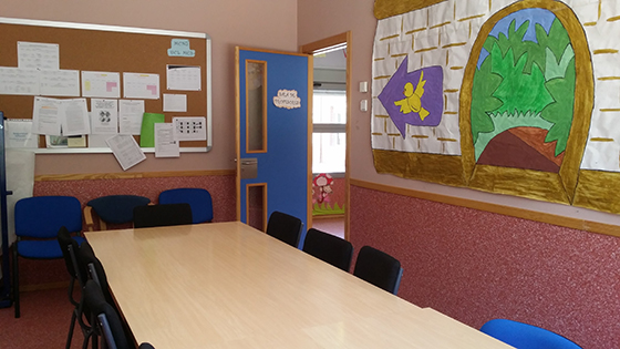 pequeños: Aula de Usos Multiples, Psicomotricidad, Biblioteca, Música, Teatro, Patios