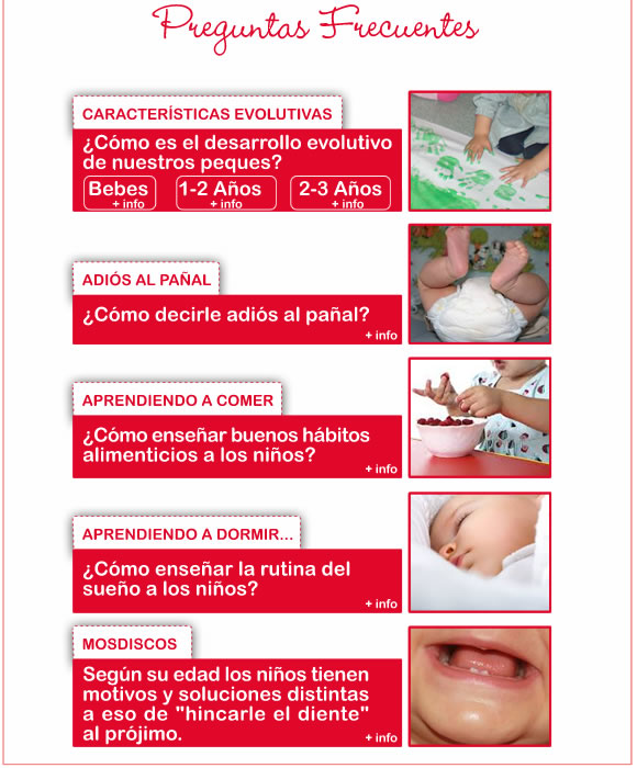 Adiós al Pañal Aprendiendo a Comer Aprendiendo a Dormir Mordiscos Bebes Características Evolutivas 1-2 Años Características Evolutivas 2-3 Años Características Evolutivas